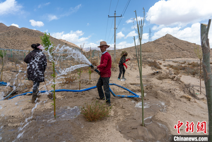 他說,雅魯藏布江兩岸的沙地多是流動沙,沙土沒有樹木生長所需的營養(yǎng),種樹前先要填生物肥、秸稈等。此外,樹苗還面臨夏季沙地溫度過高以及水源缺乏等問題?!半m然地處江邊,但種樹點(diǎn)離河道有五六公里甚至更遠(yuǎn)?!泵侠麞|說,他們篩選、馴化本地植物作為種苗,澆灌水源采取就地打井的方式取水,在沙地上植樹造林。