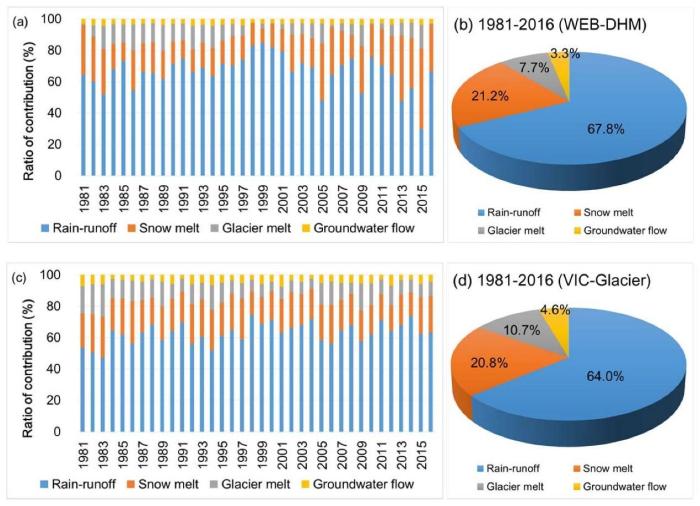 王磊表示,依托監(jiān)測網(wǎng)絡(luò)和其他多源數(shù)據(jù),研究團(tuán)隊(duì)生成了1981-2019年這38年內(nèi)雅魯藏布江流域高時(shí)空分辨率降水?dāng)?shù)據(jù),在此基礎(chǔ)上進(jìn)一步通過對(duì)比、綜合主流冰凍圈水文模型的徑流組分模擬,研究得出的結(jié)果顯示,雅魯藏布江流域(奴下水文站以上)新的降雨、融雪、冰川融化和地下水補(bǔ)給分別占總徑流的66%、21%、9%和4%。