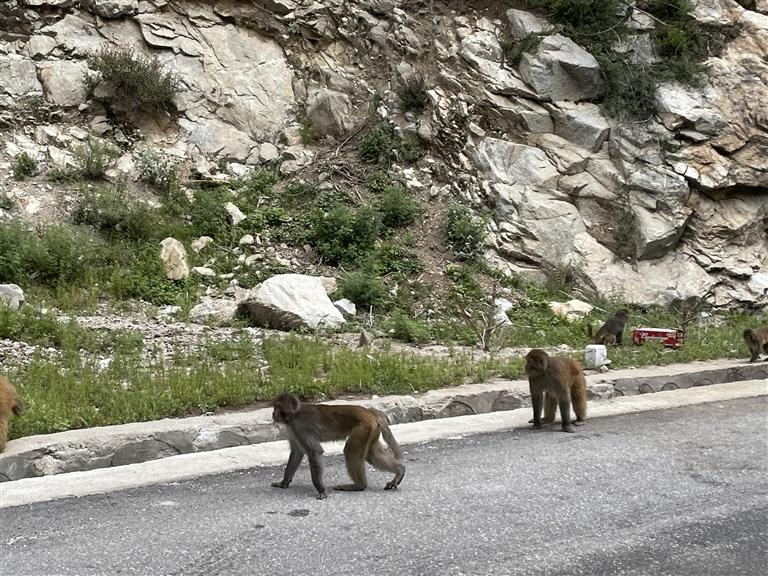 從山南市加查縣沿306省道自駕前往林芝市朗縣的路上,隨時(shí)可以遇到下山來覓食的野生藏獼猴。