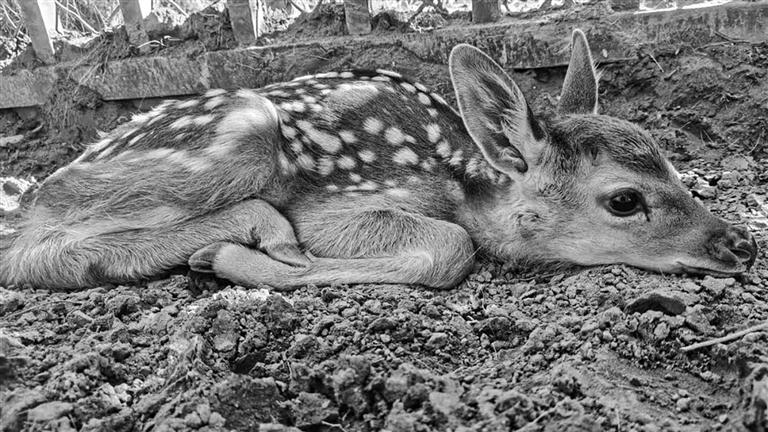 5月26日10時(shí)許,記者來(lái)到了南山公園,在飼養(yǎng)梅花鹿的地方見(jiàn)到了旦增群培。在他的帶領(lǐng)下,記者有幸近距離見(jiàn)到了剛出生一周的梅花鹿寶寶“日瓦”,它正懶洋洋地趟在一處樹(shù)蔭下休息。