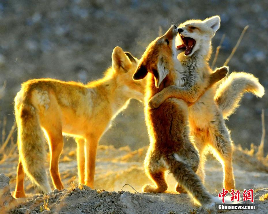 連日來,每到傍晚,在中國“鹽湖城”青海省格爾木河畔的濕地,多只赤狐在濕地嬉戲玩耍。宗布爾 攝