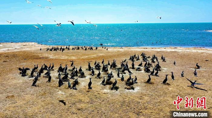 圖為青海湖北岸鳥(niǎo)類聚集。(資料圖) 剛察融媒供圖