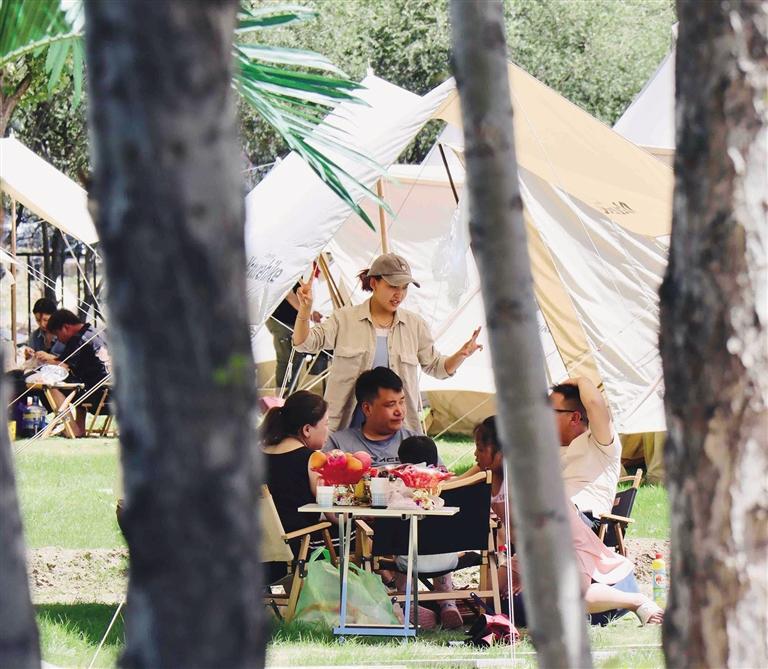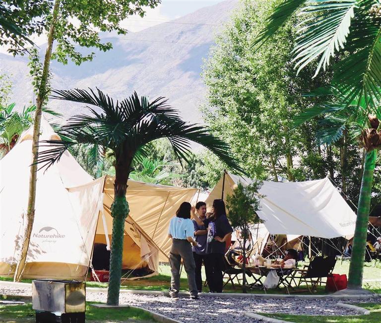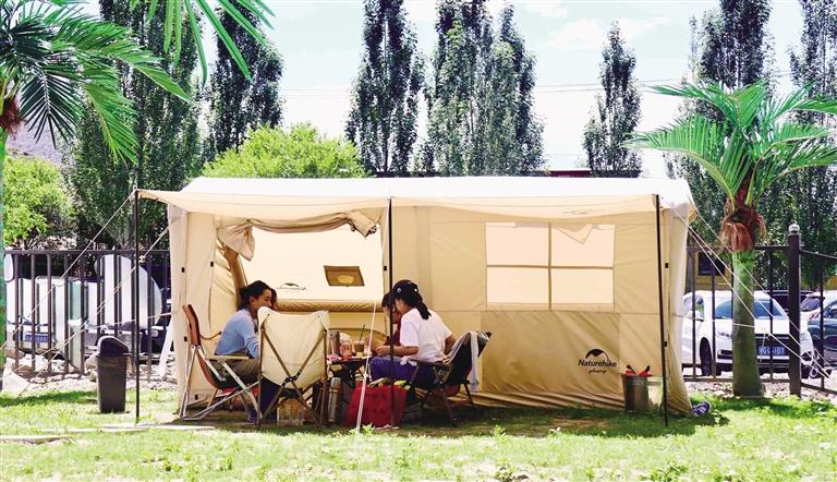 在拉薩,還未踏進林卡營地,便能聞到烤肉的香氣,尋著歡笑聲走去,你會發(fā)現(xiàn),這些林卡營地宛如“桃花源”呈現(xiàn)在眼前。不論是藏式林卡營地還是西式露營地,都有共同的“魔力”——把“煩惱”擋在門外。一頂頂白色的帳篷和天上的朵朵白云相呼應(yīng),綠色的草地是夏天才有的限定“地毯”,抬頭,油綠而繁茂的樹葉在微風(fēng)中婆娑,似乎在回應(yīng)著樹下人群的歡笑。讓人不禁感嘆,原來,大自然才是治愈內(nèi)心最好的良藥。