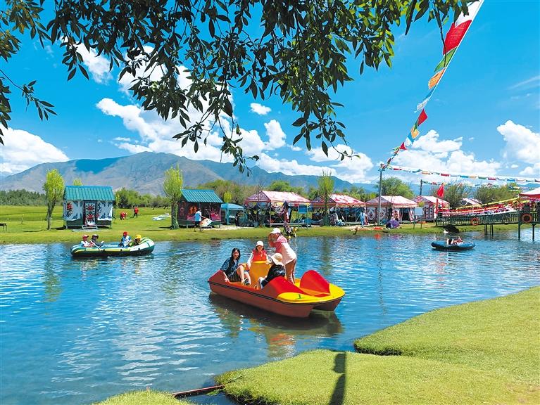 時下,正是“過林卡”的最好時節(jié),為了吸引客源、招攬生意,林卡經(jīng)營者不斷完善基礎設施,搭建漂亮的帳篷,提供特色服務,滿足市民游客戲水、劃船、健身運動和特色美食等需求。