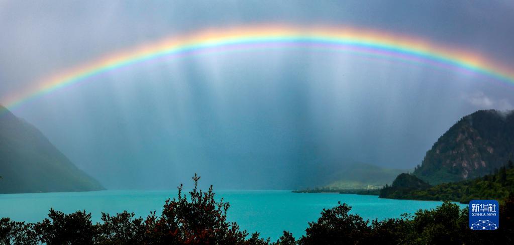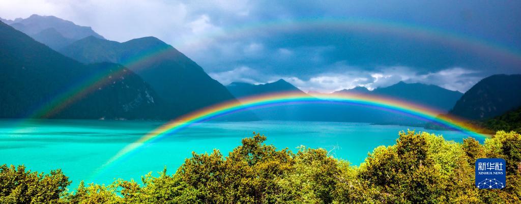 這是8月29日在巴松湖拍攝到的彩虹。新華社記者 姜帆 攝