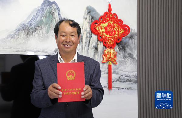 9月15日,在祁連鎮(zhèn)祁連村下河安置點(diǎn),村民鄧發(fā)斌展示拿到的房屋不動(dòng)產(chǎn)權(quán)證書。新華社記者 張智敏 攝