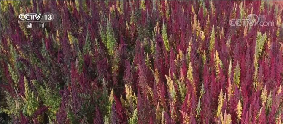 近年來,烏蘭縣采取了藜麥多品種繁育的方式,在這片1000畝的藜麥良種繁育田里,就有700多種性狀不同的藜麥,工作人員通過比對和良種選育,篩選適宜品種進(jìn)行推廣。不同品種的藜麥成熟后,藜麥穗呈現(xiàn)出火紅、金黃、紫紅等多種色彩,藜麥田宛如一幅色彩斑斕的油畫。在陽光的照射下,隨風(fēng)搖擺的藜麥穗和村民們忙碌的身影組成了秋日的豐收美景圖。