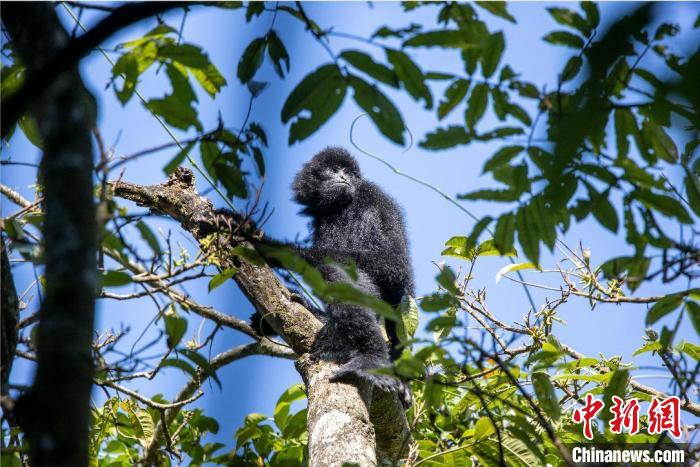 圖為景東縣觀測(cè)到的西黑冠長臂猿?!√圃?攝