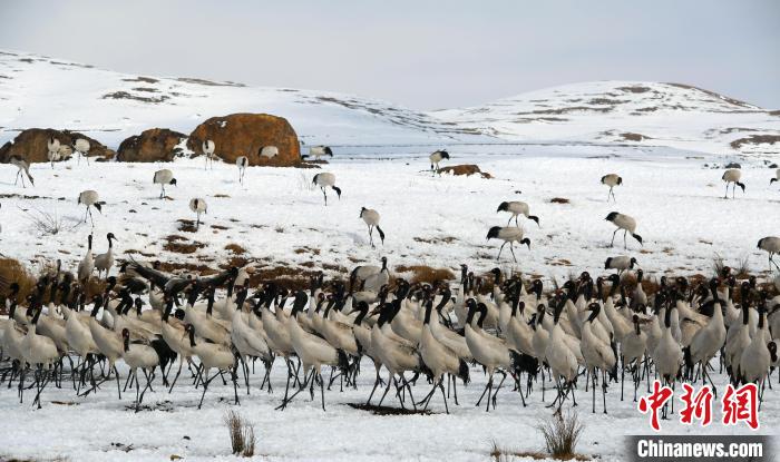 31日,2022年越冬黑頸鶴“先頭部隊”已抵達云南昭通大山包國家級自然保護區(qū)內的大海子濕地。