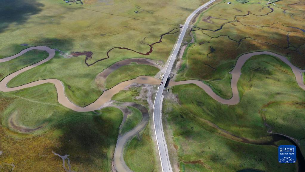 這是瑪曲縣阿萬(wàn)倉(cāng)濕地秋景(2022年9月21日攝,無(wú)人機(jī)照片)。新華社記者 陳斌 攝