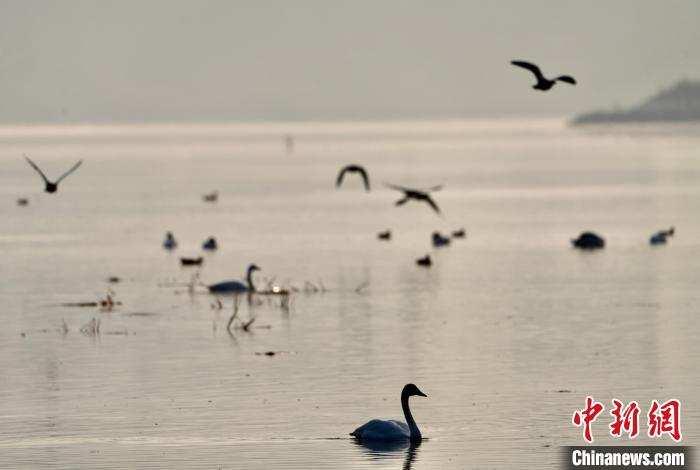 圖為天鵝和多種水鳥(niǎo)棲息在黃河流域?!±钣穹?攝