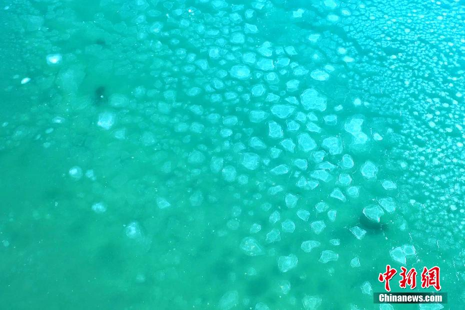 青海湖湖面封凍如破碎“玉帶”