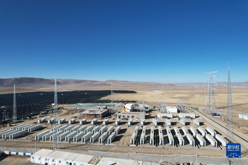 在平均海拔約4500米的西藏自治區(qū)那曲市色尼區(qū),寒風呼嘯,工人們干勁十足。藍天白云下,陽光灑在一排排光伏板上,儲能系統(tǒng)與電網(wǎng)塔基開始送電,成為藏北草原的“活力動能”。