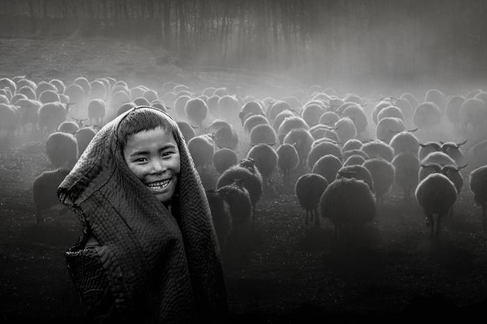 圖為焦生福作品《開心的羊倌》。 青海省祁連山自然保護協(xié)會供圖
