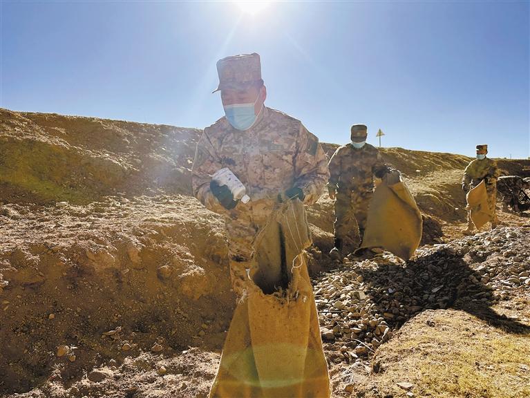 圖為安多縣武裝部官兵在河道沿岸撿拾垃圾,時(shí)刻守護(hù)著安多縣美麗生態(tài)環(huán)境。 記者 高玉潔 卞琳琳 攝