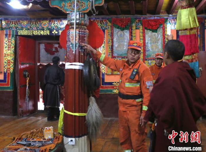森林消防隊(duì)員檢查寺廟防火設(shè)施?!∥骼@拉翁 攝