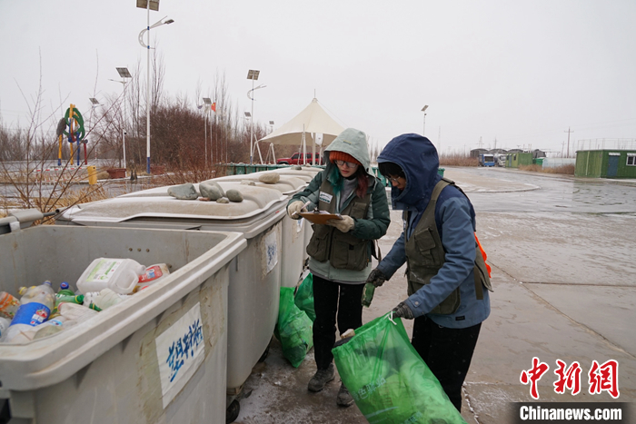 資料圖為3月24日,青海省海西州格爾木驛的志愿者將垃圾分類并進行數(shù)據(jù)統(tǒng)計。 中新社記者 馬銘言 攝