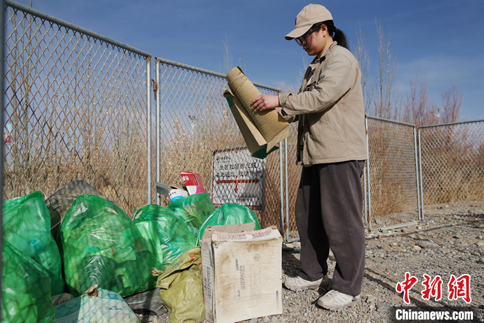 資料圖為3月24日,青海省海西州格爾木驛的志愿者將垃圾分類后進行打包。 中新社記者 馬銘言 攝