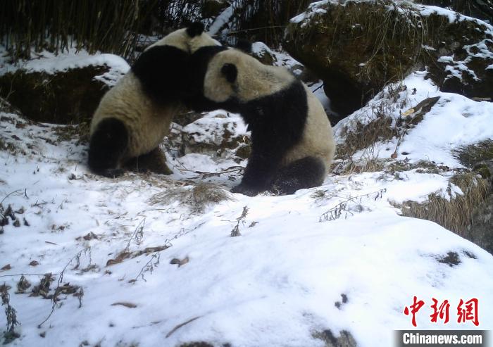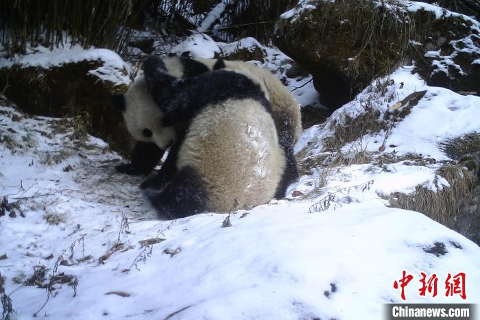 熊貓媽媽教授熊貓寶寶啃、咬、推、擠等動(dòng)作。 桃花源老河溝保護(hù)中心供圖