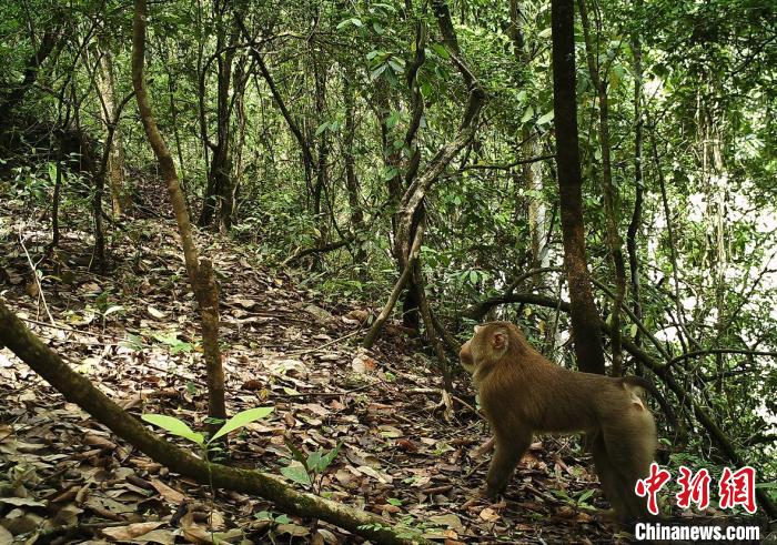 圖為紅外線相機(jī)拍攝的北豚尾猴影像 保山市龍陵小黑山省級(jí)自然保護(hù)區(qū)管護(hù)局供圖