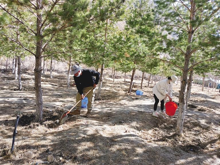 “每年的1月、2月,我們就要開始造林項目規(guī)劃設(shè)計工作,通常是先到拉薩市5縣3區(qū)實地調(diào)研,了解當(dāng)年的氣候和自然條件,尋找適合種樹的地方。3月,植樹造林工作全面開始,我們要每天前往拉薩南北山各個片區(qū),實地指導(dǎo)技術(shù)人員及農(nóng)牧民植樹造林,教授他們栽植樹木、修剪樹根(枝)、把握樹坑深度、澆灌、后期管養(yǎng)護等技術(shù)。”晉美朗杰說。