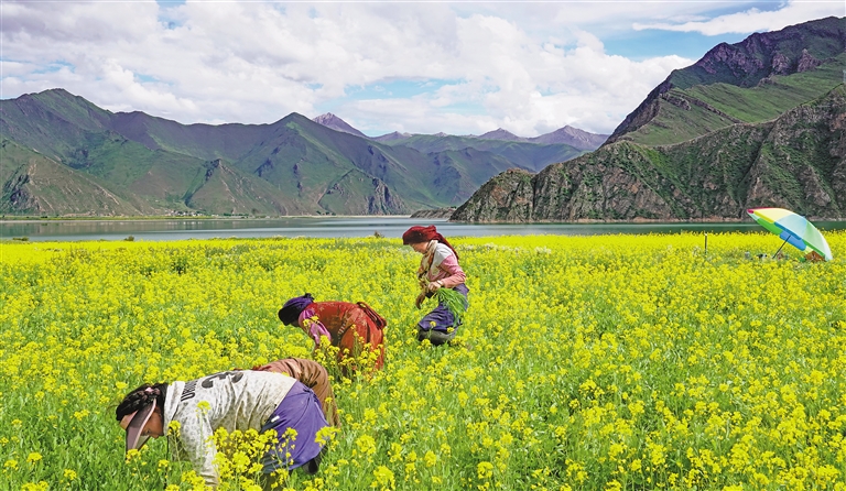 墨竹工卡距離拉薩市區(qū)68公里,是拉薩的“東大門”,平均海拔4200米,總面積5500平方公里,6.5萬人。近年來,墨竹工卡縣致力于墨竹小油菜“三產(chǎn)融合”發(fā)展,壯大一產(chǎn)、提升二產(chǎn)、延伸三產(chǎn)。2023年墨竹工卡縣共種植墨竹小油菜3.03萬畝,油菜籽產(chǎn)量預計達0.45萬噸,預計實現(xiàn)總產(chǎn)值3600萬余元。2022年縣菜籽油榨油廠通過與當?shù)厝罕姾炗喪召徍贤?,帶?600余戶農(nóng)戶增收400.6萬元。墨竹旅游業(yè)呈現(xiàn)快速發(fā)展的勢頭,接待服務能力明顯提高。今年上半年,全縣接待旅游者3.8萬人次、同比增長90%,旅游總收入331.45萬元,同比增長259.7%。文/圖 記者 張雪芳