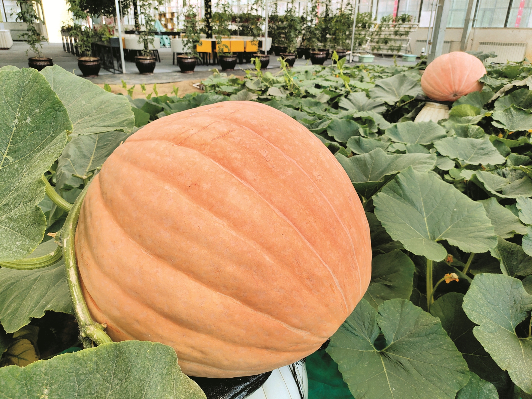 圖為曲水縣才納國家現(xiàn)代農(nóng)業(yè)示范園區(qū)無土栽培展館內(nèi)種植的南瓜長勢喜人。 拉薩融媒記者 李從芳攝