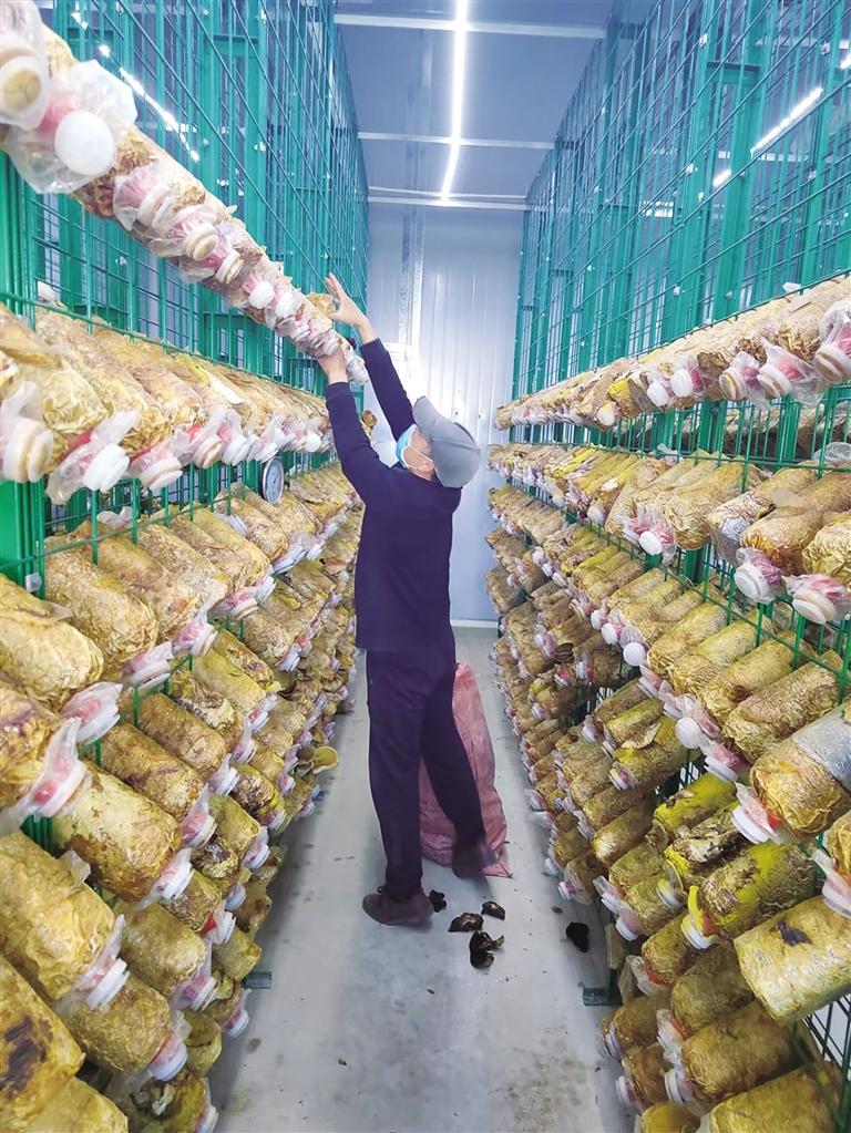 采收桑黃。記者 王靜 攝