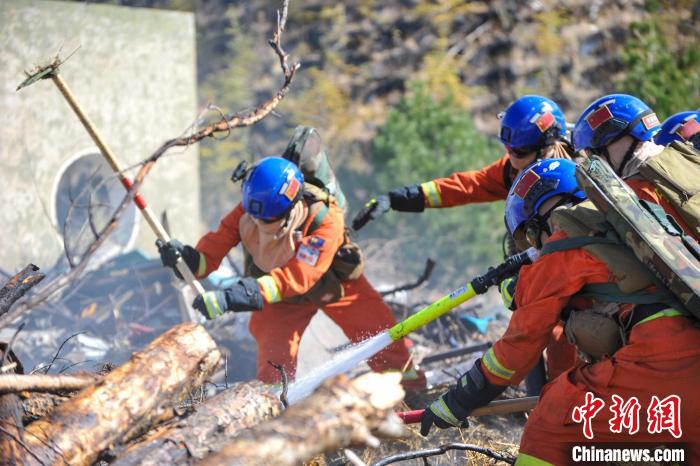 圖為防滅火實戰(zhàn)演練現場。拉薩市森林消防大隊 供圖