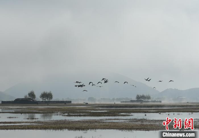 圖為10月31日,一群候鳥(niǎo)在納帕海上空盤旋。黃興鴻 攝