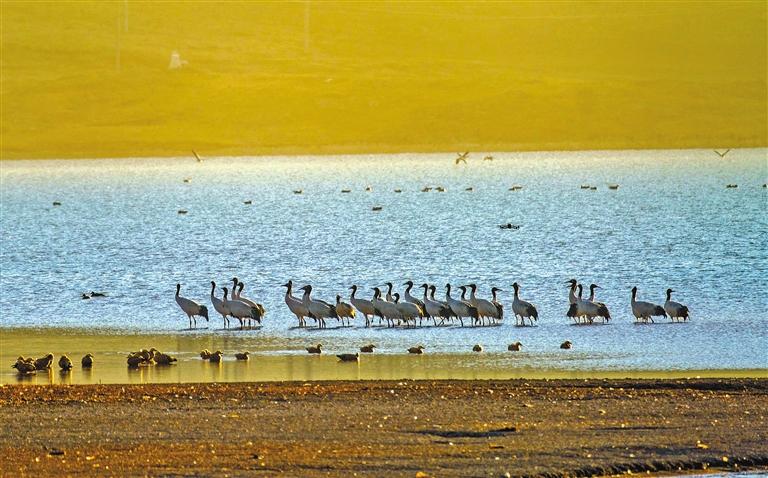 “生態(tài)好不好,看鳥就知道?!苯?,在西藏越冬的“老朋友”黑頸鶴越來越多。每年3月中旬,黑頸鶴會(huì)從越冬地——雅江中游河谷及其支流拉薩河、年楚河流域的“一江兩河”地區(qū),飛去羌塘北部草原等地繁育后代;10月中下旬又從繁殖地——那曲的班戈縣、申扎縣、嘉黎縣,阿里的日土縣、普蘭縣,日喀則的昂仁縣及拉薩的當(dāng)雄縣返回到越冬地。黑頸鶴的成群遷徙、停歇或繁殖,正是生態(tài)環(huán)境持續(xù)向好的“最美注腳”。