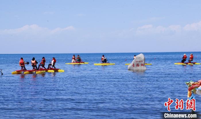 圖為游客在青海湖景區(qū)內(nèi)游玩。馬銘言 攝