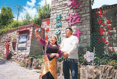 村民巴珍家的藏式小樓,院內鮮花簇簇、室內溫暖如春,二樓的3個房間租給旅游企業(yè)用作客房。“一年房租收入有2萬多元,我在旅游公司打工,月工資4000多元,一年收入七八萬元,關鍵是工作生活都在自己村里,簡直是太方便了?!卑驼浜軡M意現(xiàn)在的生活。旦增達杰介紹,光房屋租金一項,村民戶均年增收3萬多元。