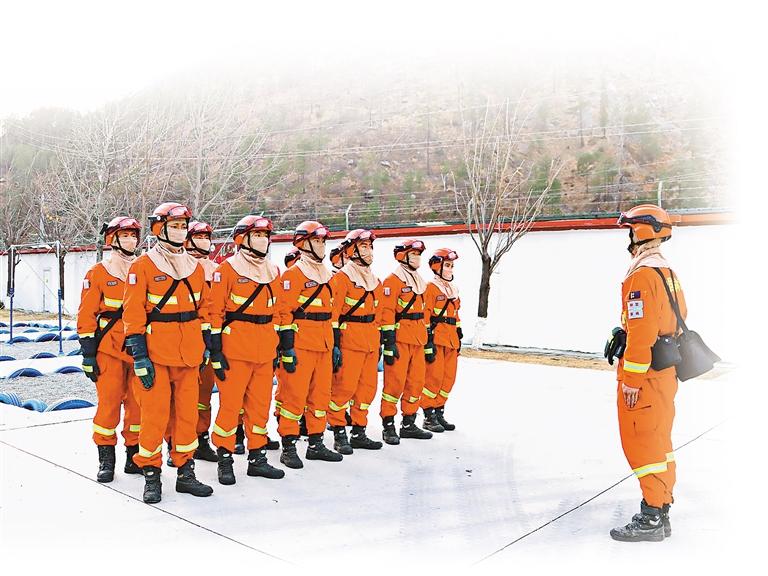 訓(xùn)練中,消防員跨火欄、穿火林。記者 謝筱純 王珊 攝
