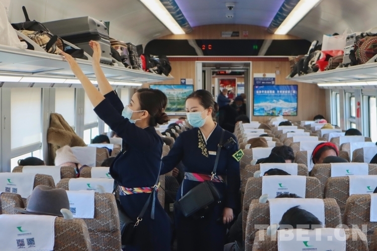在拉日鐵路上的每一列高原動(dòng)車組列車中,1名列車長(zhǎng),3名乘務(wù)員,要負(fù)責(zé)9節(jié)車廂,755名乘客的乘務(wù)工作。從上車查驗(yàn)車票、行李安全擺放、列車禁煙宣傳,到途中協(xié)助乘客補(bǔ)票、提醒乘客到站信息等,列車乘務(wù)員們幾乎沒(méi)有時(shí)間休息。