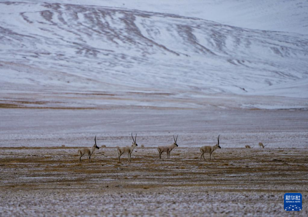 生活在三江源國(guó)家公園唐北片區(qū)的藏羚羊(2024年2月1日攝)。新華社記者 儲(chǔ)國(guó)強(qiáng) 攝