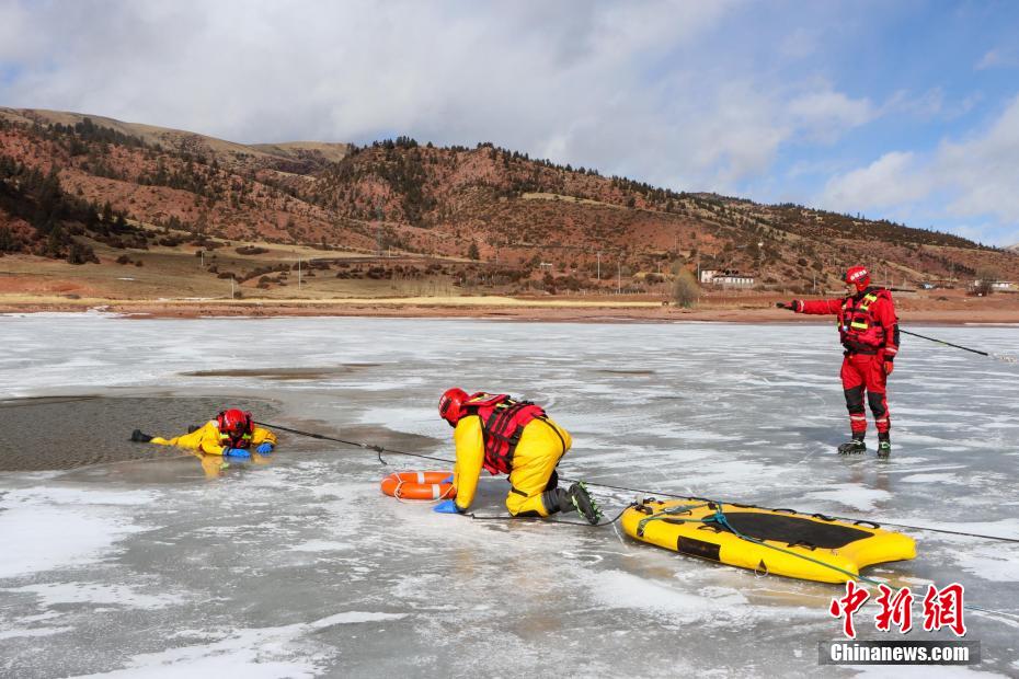 西藏芒康森林消防“爬冰臥雪”鍛煉冰面救援能力