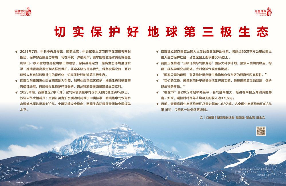◇西藏建立起以國家公園為主體的自然保護地體系,將超過60萬平方公里的國土納入生態(tài)保護紅線,占全區(qū)國土面積的50%以上。