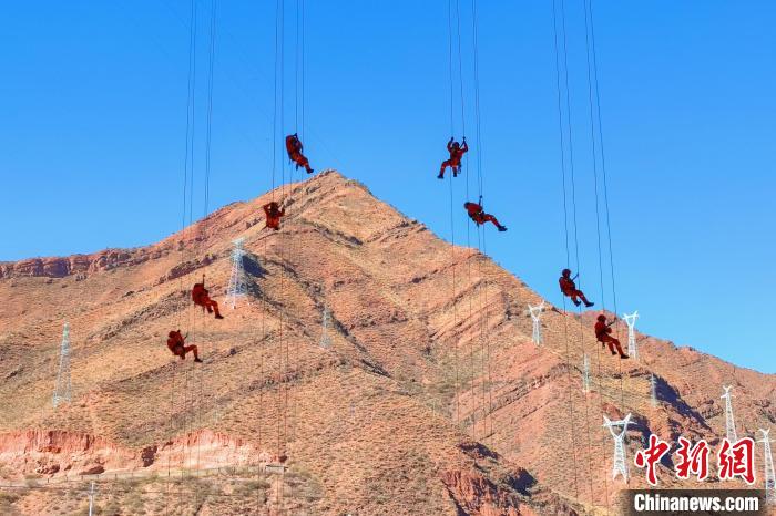 比賽現(xiàn)場,消防員運(yùn)用一對(duì)一掛接救援技術(shù)將被困者安全下放至地面。姚天銳 攝