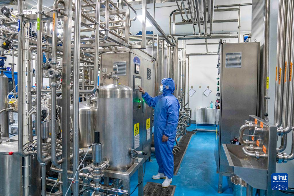 在各式各樣的奶制品機(jī)器旁,幾名工作人員正記錄著其運(yùn)行情況;實(shí)驗(yàn)室里,檢驗(yàn)人員在對(duì)牛奶進(jìn)行抽樣檢測(cè)……在位于西藏那曲市聶榮縣嘎確牧場(chǎng)的奶制品生產(chǎn)廠房里,罐裝酸奶生產(chǎn)流水線的準(zhǔn)備工作正在進(jìn)行。