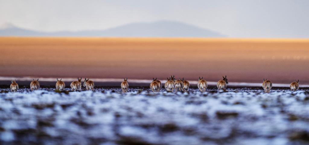 6月15日清晨在羌塘國家級自然保護區(qū)拍攝的遷徙中的母藏羚羊。