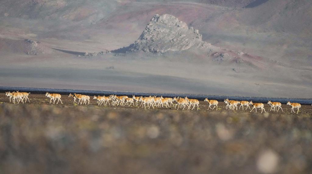 遷徙途中的藏羚羊(6月13日攝)。