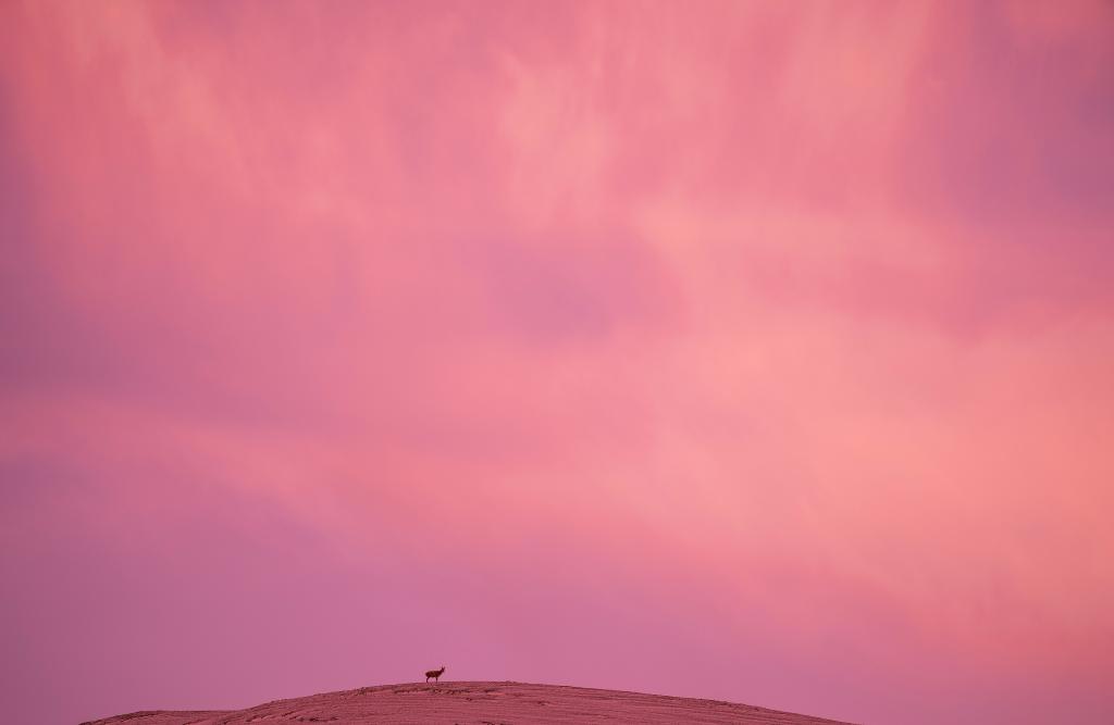 6月15日清晨雪后,在羌塘國家級自然保護區(qū),一只母藏羚羊站在山頂瞭望。