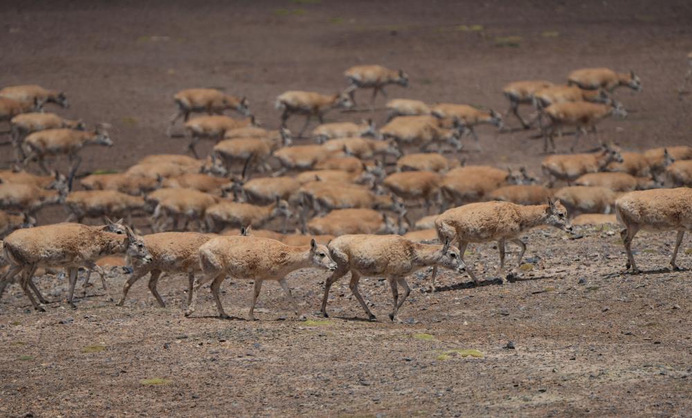 甜水河附近遷徙的藏羚羊(6月14日攝)。