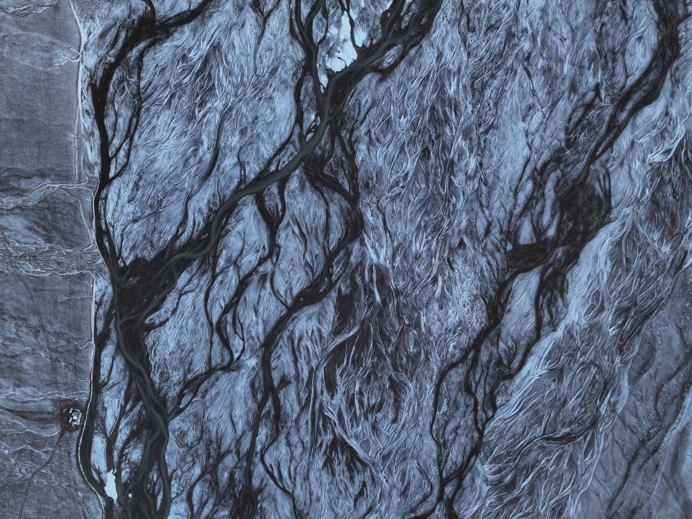 第三場(chǎng)雪悄然而至,母羊的背影消失在雪中。遠(yuǎn)方地平線上,依稀可以看到她的族群整齊地排列著蠕動(dòng),像捧起一條輕盈的哈達(dá),靜待她歸。