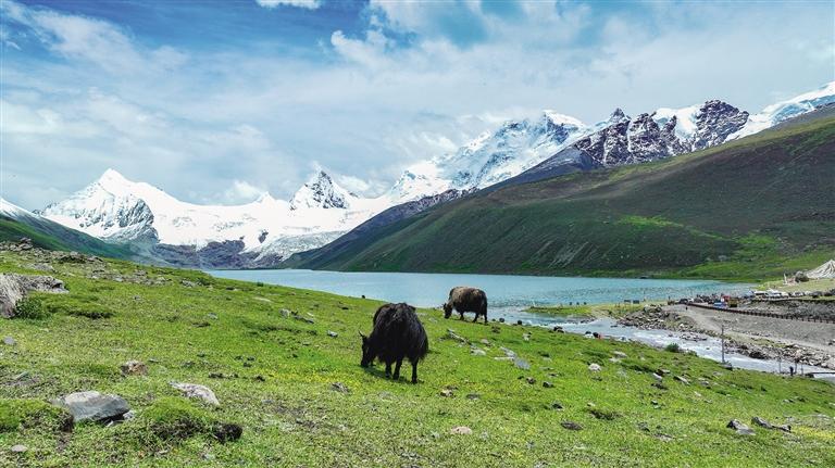 薩普雪山,坐落于那曲市比如縣羊秀鄉(xiāng)的普宗溝深處,是大自然的杰作。這座壯麗的雪山腳下,冰川如同時(shí)間的印記,靜靜流淌;湖泊如鏡,倒映著天空的純凈與雪山的威嚴(yán);廣闊的草場(chǎng)綠意盎然,牛羊成群,和諧共生。這里的景致宛如人間仙境,美得令人窒息,讓無(wú)數(shù)游客和攝影愛(ài)好者神往。