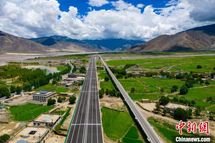 圖為西藏拉薩至日喀則高等級公路(左)和拉日鐵路(右)并行。(西藏自治區(qū)交通運(yùn)輸廳 供圖)