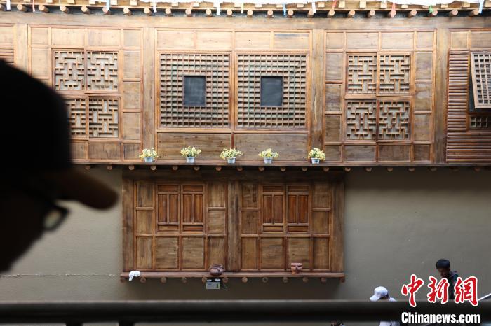7月24日,參加“中國式現(xiàn)代化的萬千氣象·網(wǎng)絡(luò)名人青海行”活動(dòng)的網(wǎng)絡(luò)名人,抵達(dá)江河源頭青海玉樹藏族自治州,在玉樹州博物館一覽自然與人文之美。玉樹州博物館是玉樹地震災(zāi)后重建十大標(biāo)志性建筑之一,分為序廳、自然展區(qū)、人文展區(qū)、臨時(shí)展廳。其通過實(shí)物標(biāo)本等方式,展示了三江源和可可西里的野生動(dòng)物、草地、森林,以及玉樹州的歷史、建筑、服飾、飲食等。圖為玉樹州博物館展示的建筑文化。中新社記者 張?zhí)砀?攝