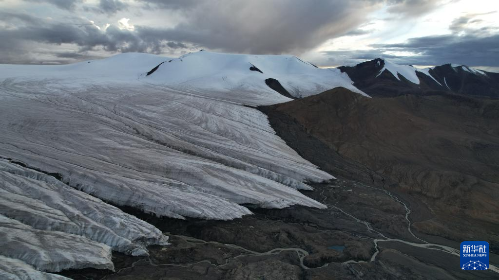 這是9月4日拍攝的普若崗日冰原8號冰川和冰川消融形成的徑流(無人機照片)。新華社記者 劉詩平 攝