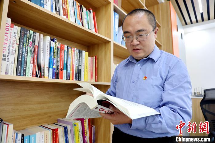 圖為蔡海寧查閱資料。張?zhí)砀?攝